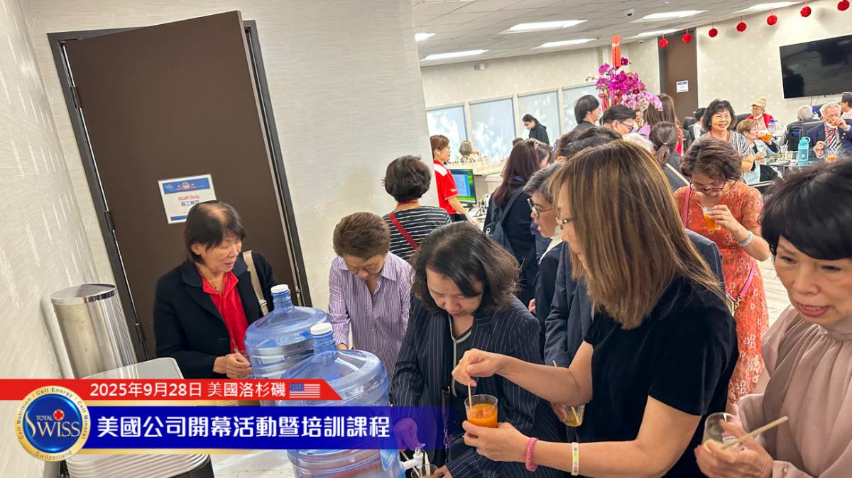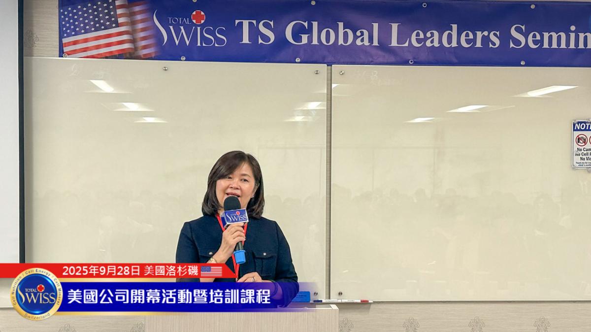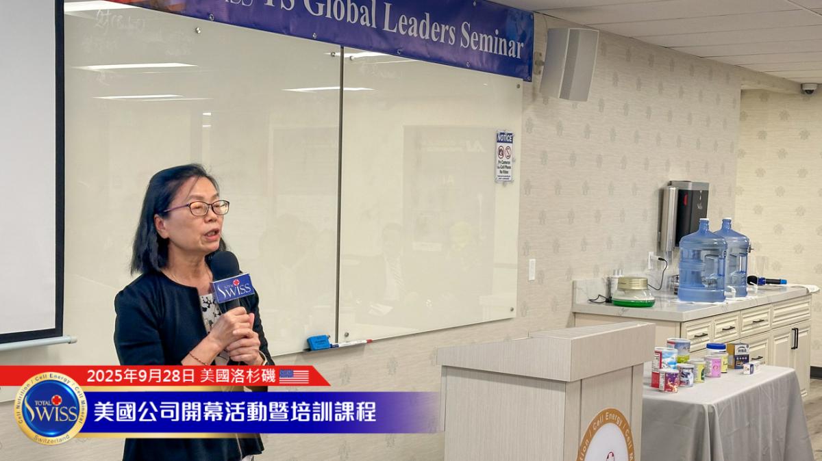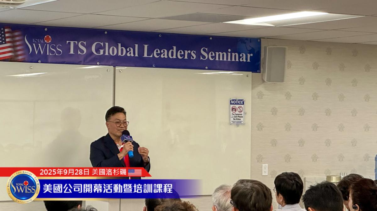 美西時間9月28日下午,Total Swiss USA盛大開幕系列首場活動於加州核桃市Total Swiss美國公司二樓舉行。內容包括夥伴的健康見證、Amy姐與金東元兩位CCP的事業分享,以及王博士的全產品講座與對Total Swiss未來發展的規劃。每個環節都為Total Swiss在美國這個擁有3億人口且具有強大消費力的市場,注入了加速發展的豐沛能量。