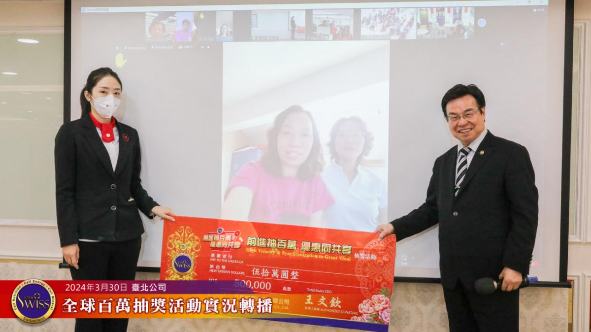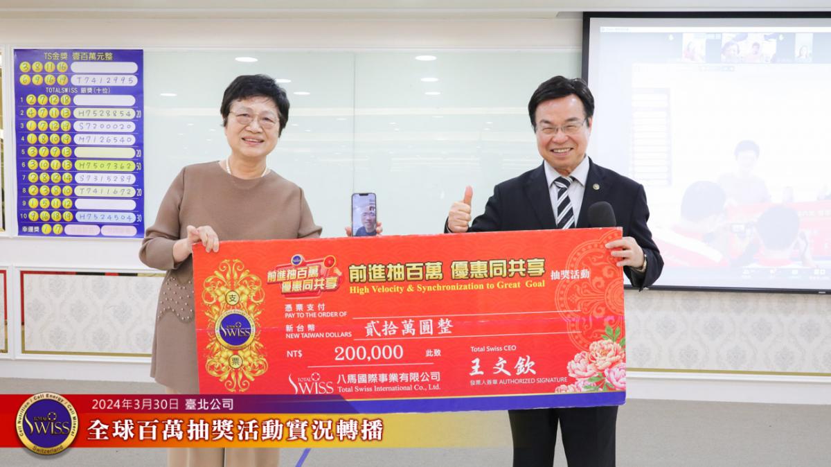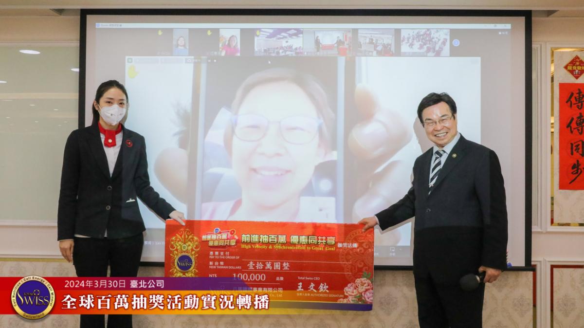 Total Swiss第27回全球百萬抽獎,於2024年3月30日下午一點鐘在台北公司七樓舉行,除台北現場外,活動全程也向台灣各區據點及全球16個市場進行實況轉播。