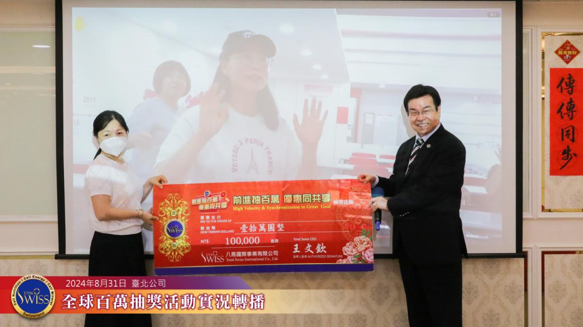 Total Swiss氣勢如虹,原本就異常忙碌的王博士也就更為忙碌了,整個八月,只要他在台北,每一天他都有見不完的客人與夥伴,在8月31日百萬抽獎展開之前,上午及中午時間,王博士又連續接待了多組賓客,包括瘋起雲湧龍舟隊、書法家中華書道學會理事長楊旭堂以及來自馬來西亞的鄭有文拿督夫婦等等。