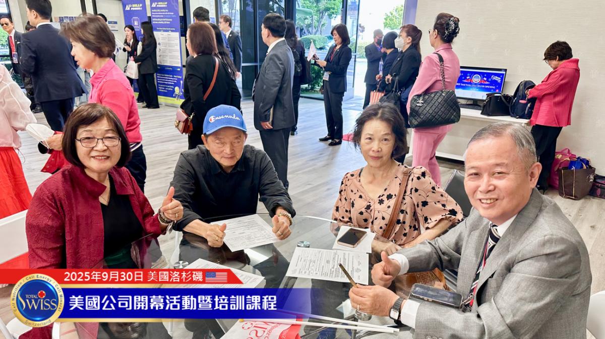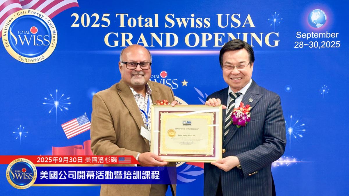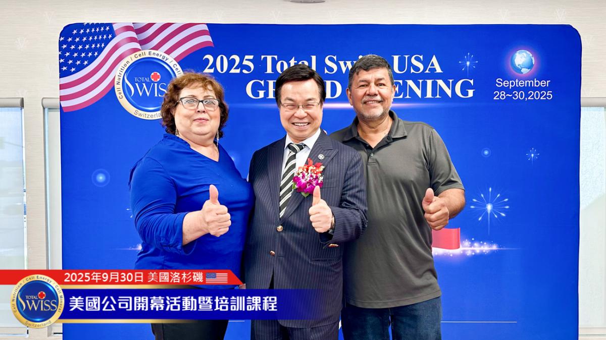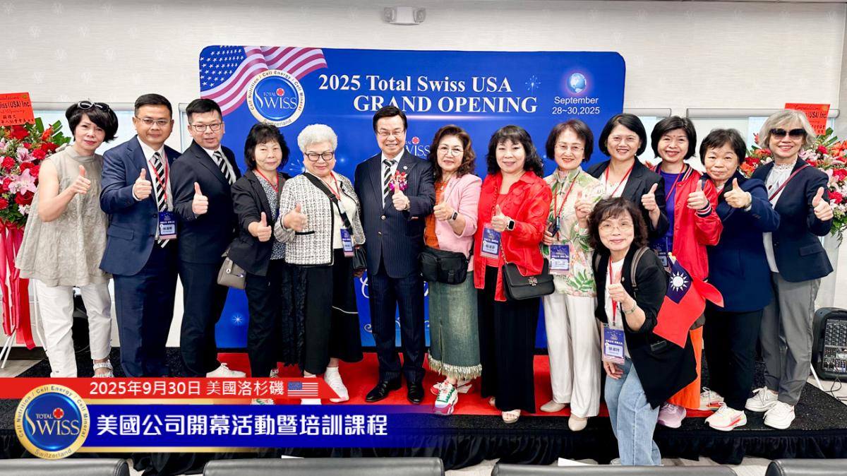 美西時間2025年9月30日上午11點,Total Swiss USA Grand Opening(Total Swiss 美國市場盛大開幕剪綵儀式)在加州核桃市山谷大道Total Swiss美國公司隆重舉行。除了百餘位來自台灣、韓國、馬來西亞的Total Swiss領導人,以及數十位美國當地夥伴與新成員之外,更邀請到蓋博谷商會CEO Mr. Aziz Amiri、核桃市前市長及眾議員候選人 Mr. Eric Ching、Diamond Bar市長 Dr. Chia Yu Teng 及其夫人 Teresa Lee、核桃市議員 Ms. Kay Lee Law 等當地政商名流共襄盛舉,一同見證這歷史性的一刻。