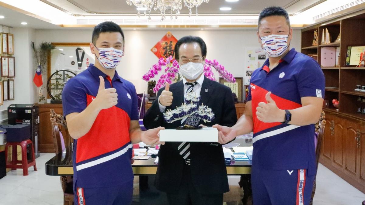9月1日上午,在前往總統府參加總統府的英雄派對之前,王翌達與教練特別先行來到Total Swiss台北公司拜會王博士,向王博士表達長期支持提攜的感謝之意。