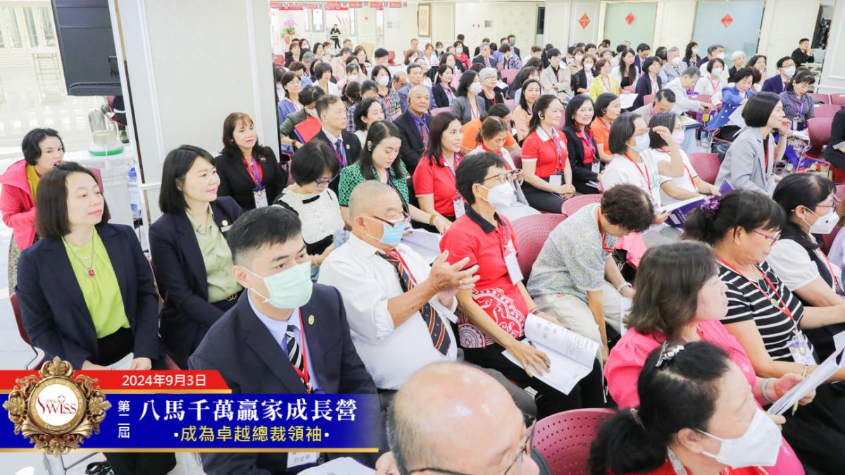 9月3日、4日,八馬第二屆千萬贏家成長營熱鬧展開,來自香港、新加坡、馬來西亞、韓國、越南、日本、菲律賓、澳洲以及台灣本地的240多位全球領導人齊聚台北公司七樓,一起向時台明老師再次學習如何成為卓越總裁領袖、如何成為八馬千萬贏家。