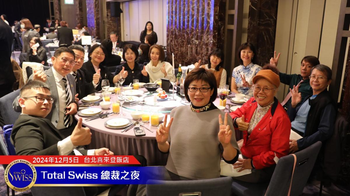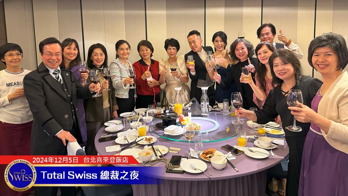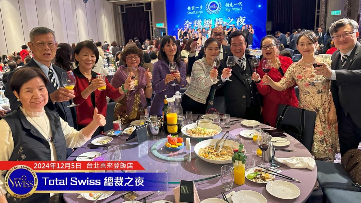 晚宴即將進入尾聲的時候,王博士十分肯定2024年總裁之夜全球一家的氣氛,他說:「Total Swiss 是一家人,We are family! 我們要一起成功,不分彼此。不管是哪個組織,我們都要互相幫助、互相扶持,讓我們的明天變得更好。」