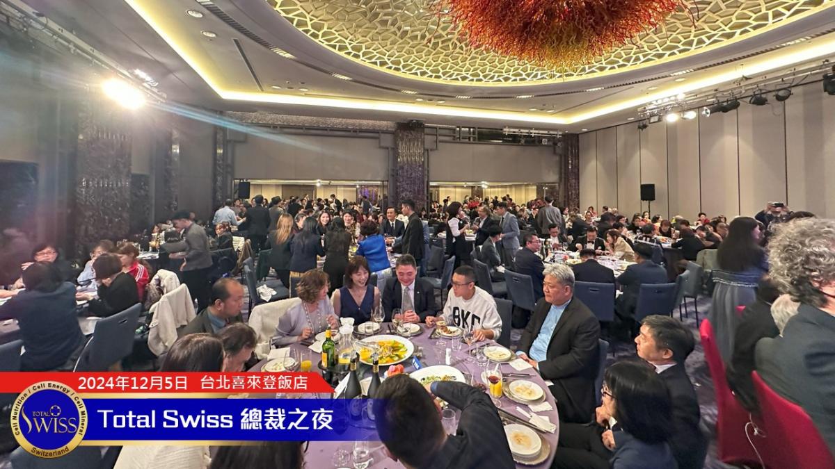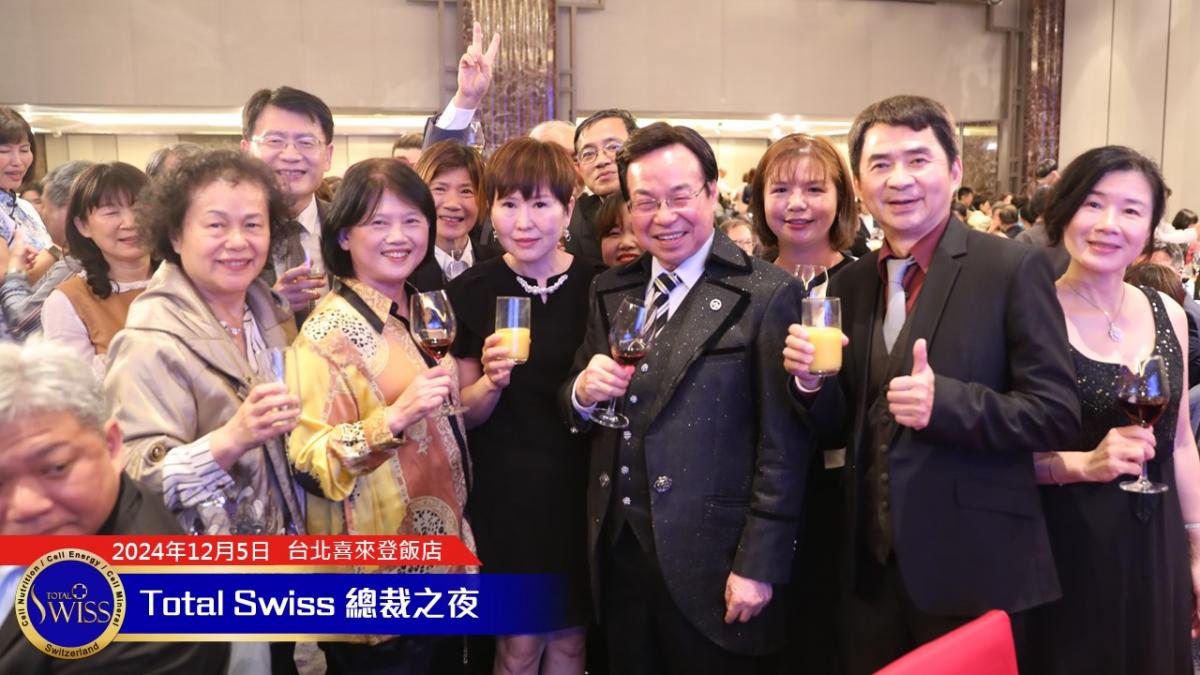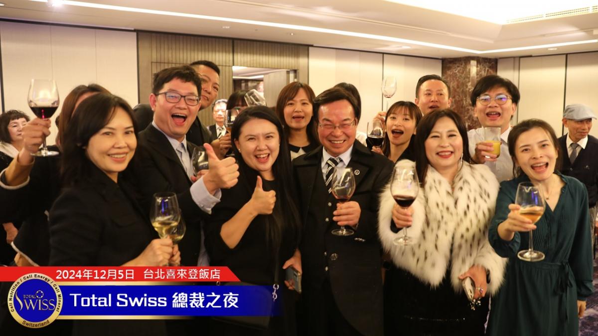 2024年的總裁之夜由張在心、王澤瑛兩位副總擔綱主持,兩人首先感謝王博士帶領Total Swiss走過「傳傳同步、藍海領航」的2024年,並引導全場總裁一起高呼2025年的目標:「超前一步,領先一代,Small Steps, Big Impact」