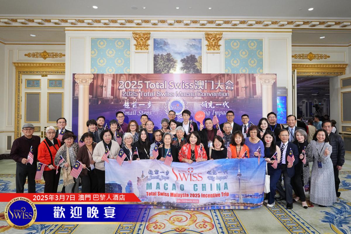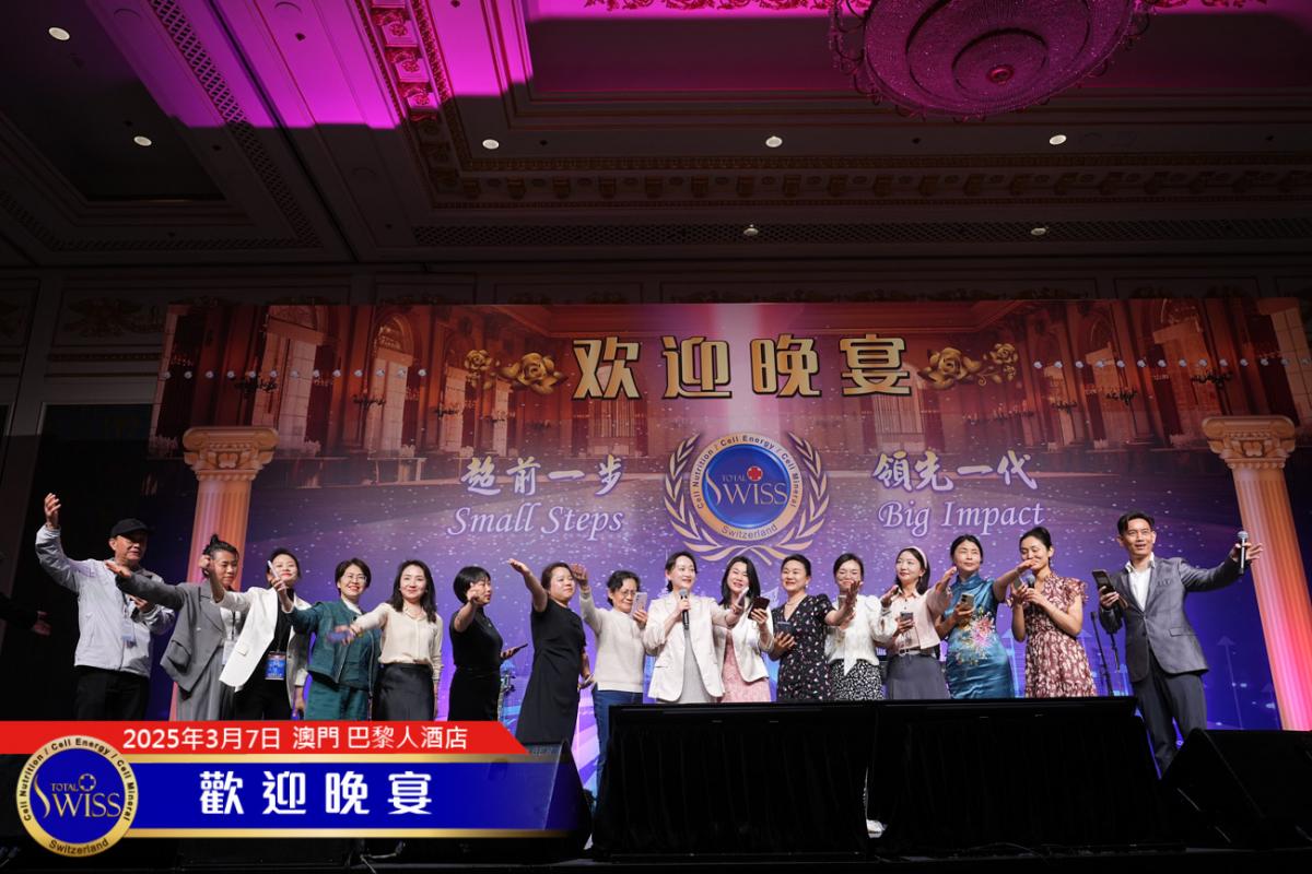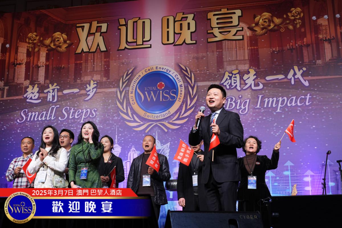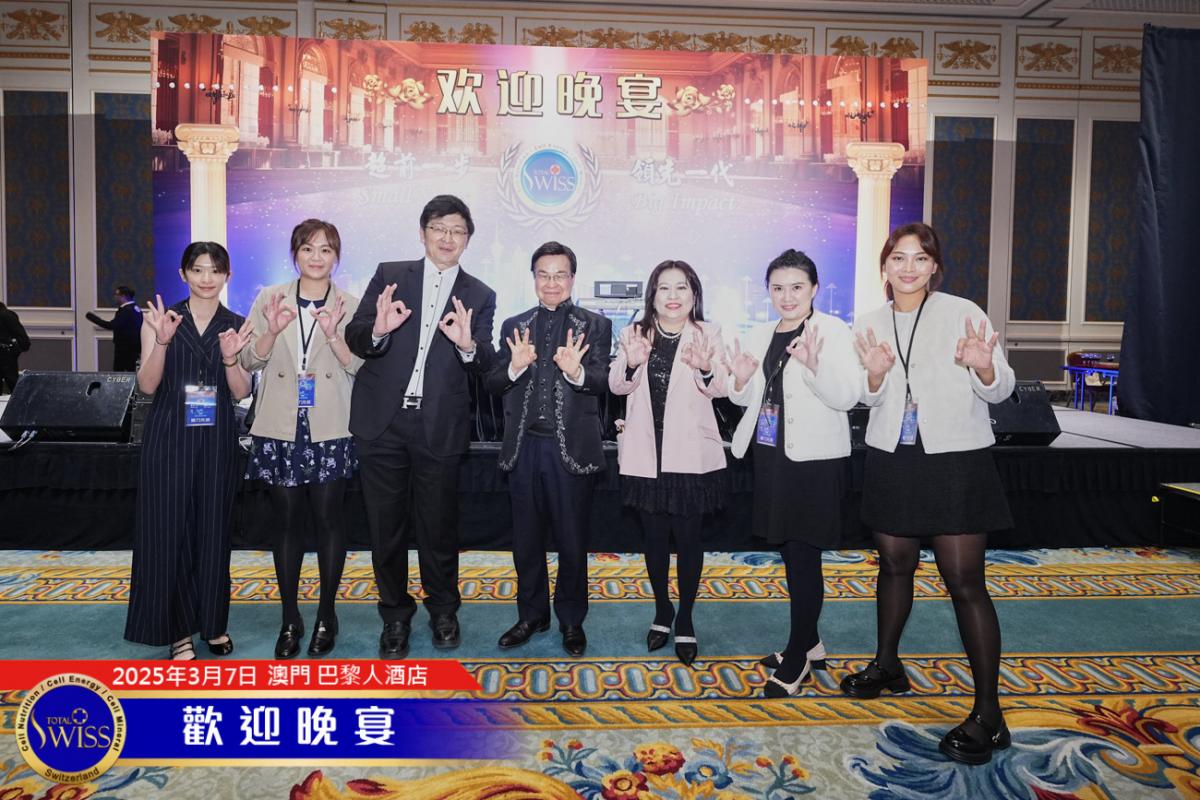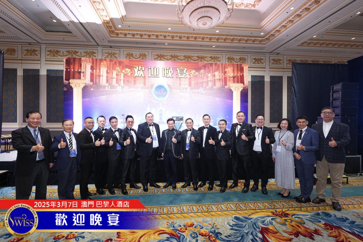 經過了台灣行政的用心籌畫以及大陸行政的全力支援,2025 Total Swiss澳門大會第一個重要活動,也可以稱為整個系列活動的序幕「巴黎人歡迎晚宴」於3月7日晚間舉行,七百多位來自大陸、菲律賓、新加坡、馬來西亞、印尼、韓國、日本、香港、台灣及澳洲的夥伴陸續入席之後,王博士於晚間六點半左右向全場家人舉杯,宣布晚宴正式開始。