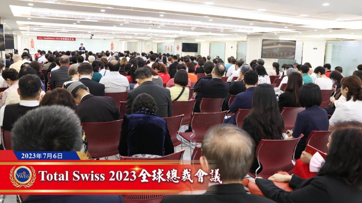 2023年7月6日下午14:00,Total Swiss 2023年全球總裁會議在Total Swiss台北公司七樓大會議室舉行,來自16個國家的全球一星總裁、二星總裁以及皇冠總裁齊聚一堂,現場的每一個總裁,都是Total Swiss一份寶貴的戰力,而所有總裁聚在一起的場面,更是一個Total Swiss開創新局的壯盛軍容。經過王博士的勉勵與引領之後,總裁們也將會在未來的道路上全力以赴、更上層樓。