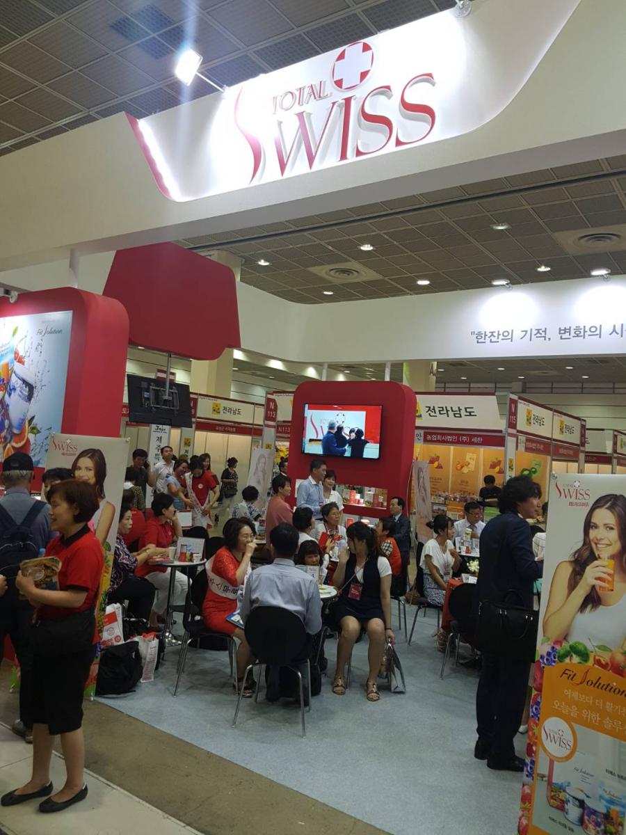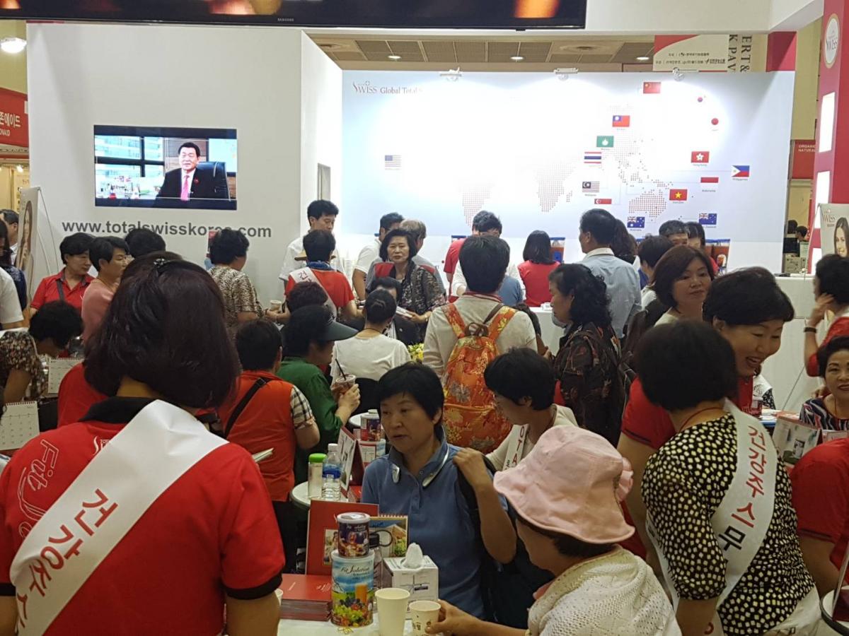 2018年8月16日(週四),韓國COEX展覽會隆重登場,Total Swiss韓國公司的展覽攤位一早就擠進滿場的人潮;Total Swiss創辦人王文欽博士及韓國總經理宋國柱也從一開展就親自坐鎮現場,跟夥伴及來訪的貴賓洽談。