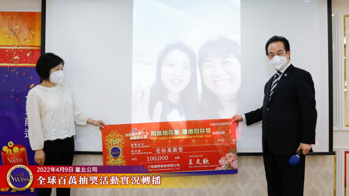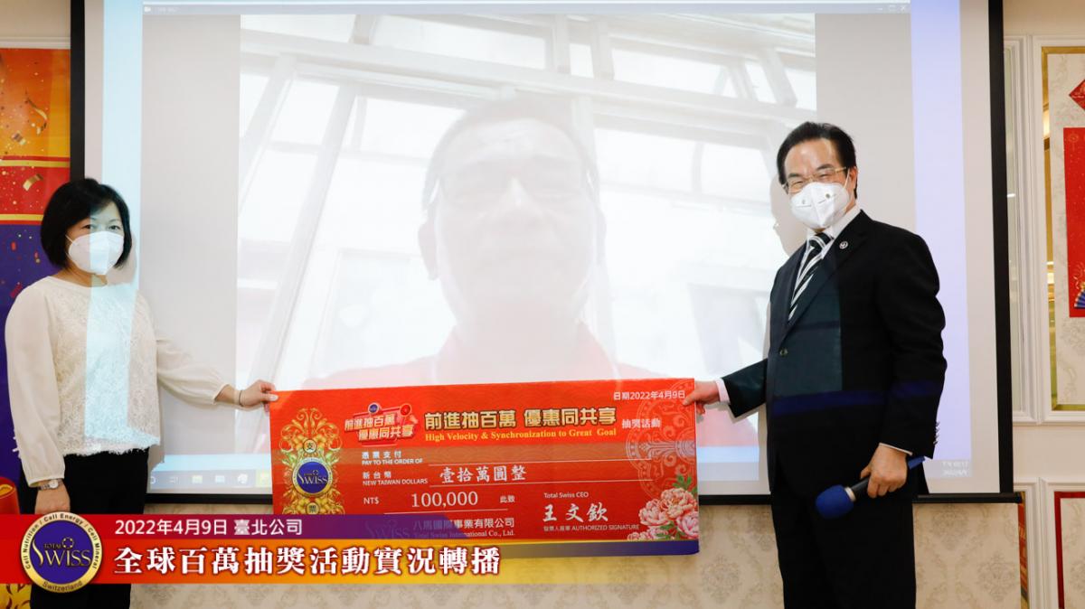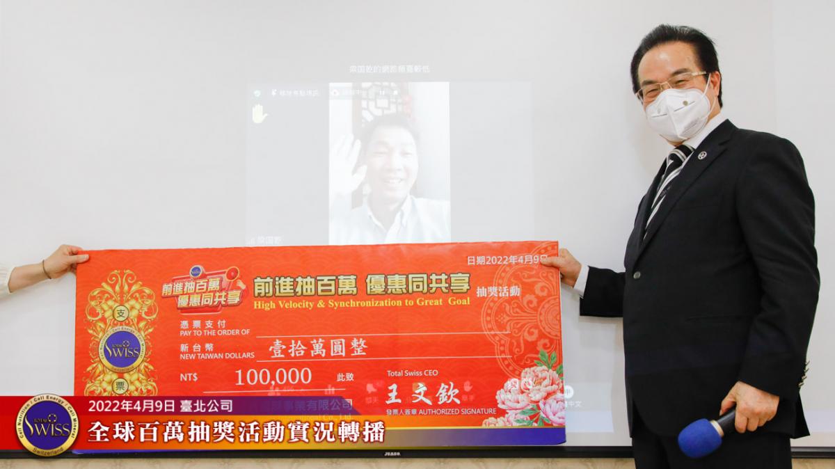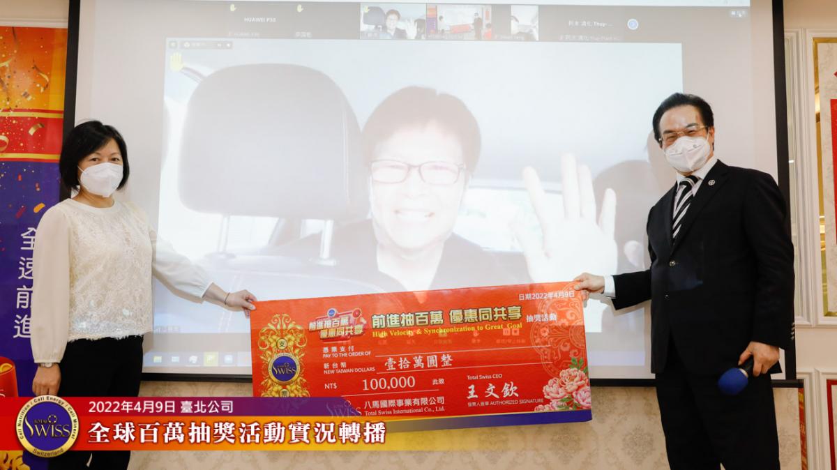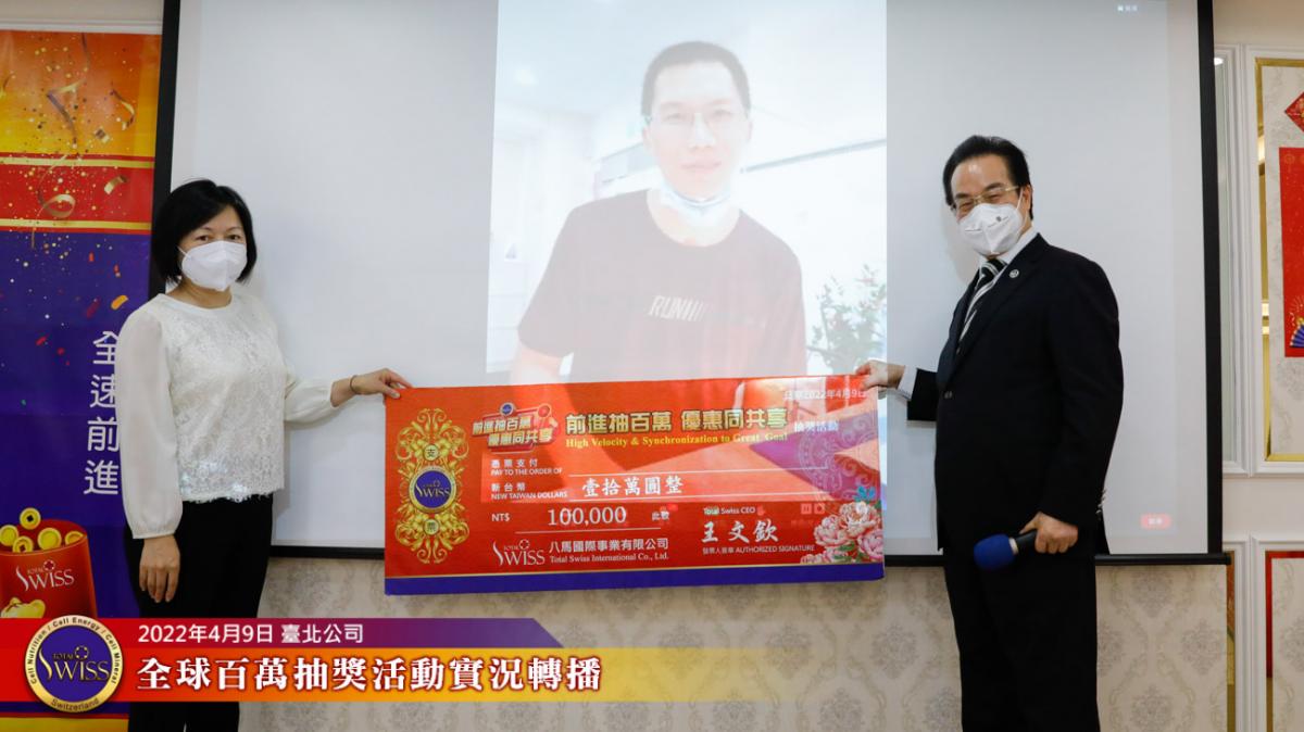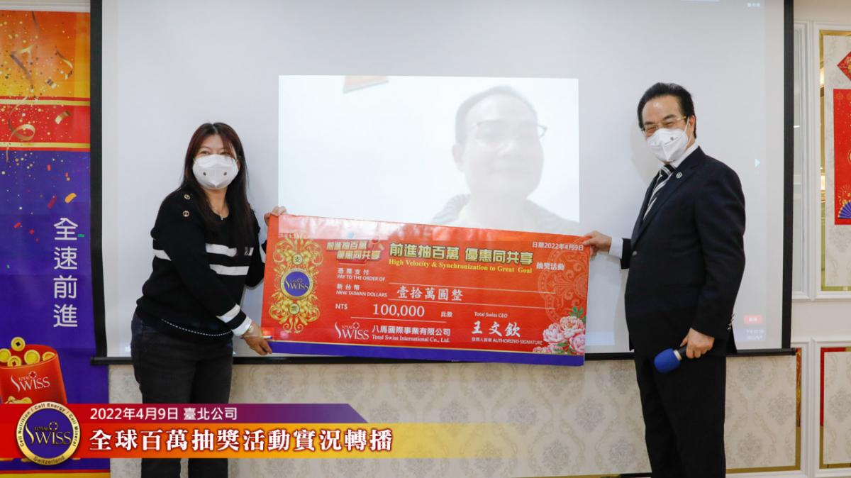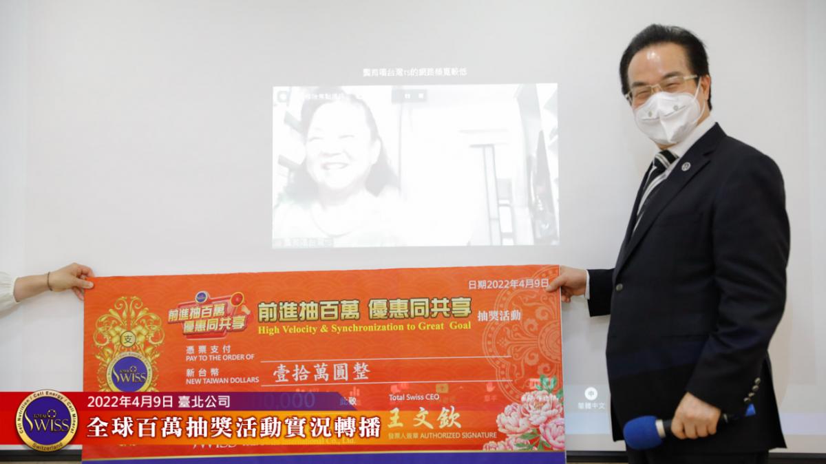 Total Swiss第四次百萬抽獎全球實況轉播在台北公司七樓進行,前面三次百萬大獎,分別由台灣、韓國、新加坡三個市場的夥伴獲得,這種大獎從天而降的趣味,已經在夥伴之間掀起了熱烈的話題。