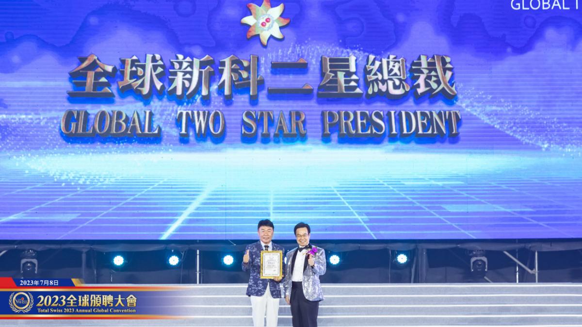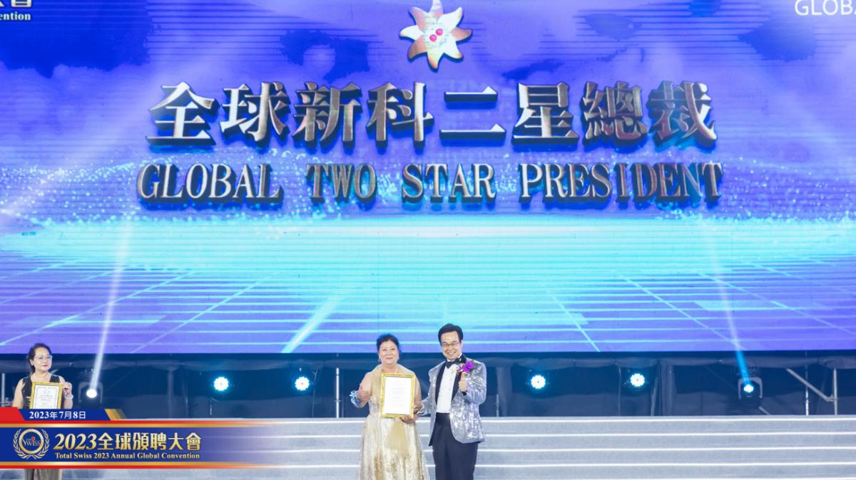 第二位發言的二星總裁是來自韓國的郭玔。在郭玔發言之前,王博士特別介紹,他們一家四個總裁,爸爸、媽媽和一對雙胞胎女兒都是Total Swiss韓國的總裁,女兒也創下Total Swiss韓國最年輕成為總裁的紀錄。