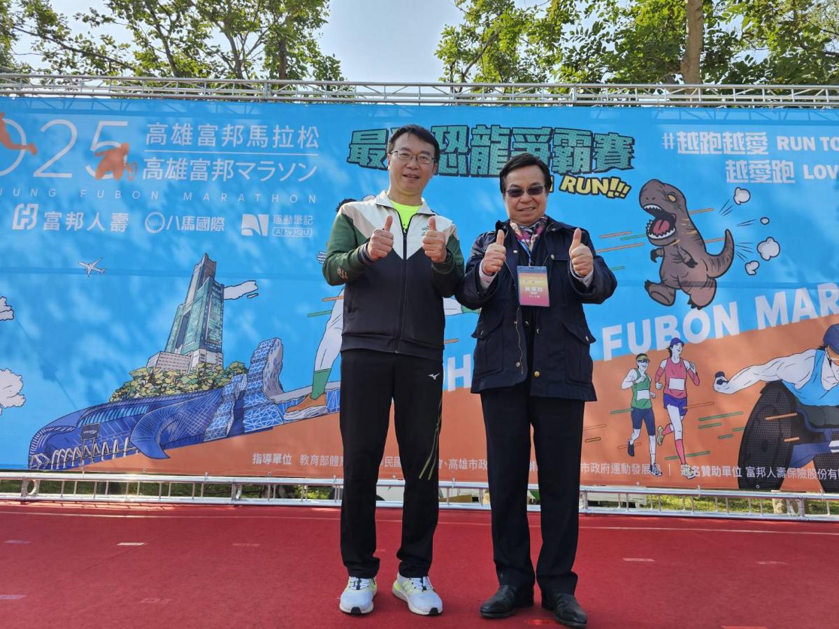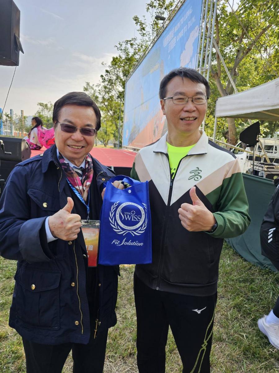 籌畫並操盤本次活動的高雄運動發展局對於Total Swiss長期支持運動員的行動已有深入了解,為了表達對王博士取之社會用之社會理念與贊助高雄馬拉松的肯定,運發局局長侯尊堯特別頒發感謝狀給王博士,用大拇指向王博士表達肯定與謝意。