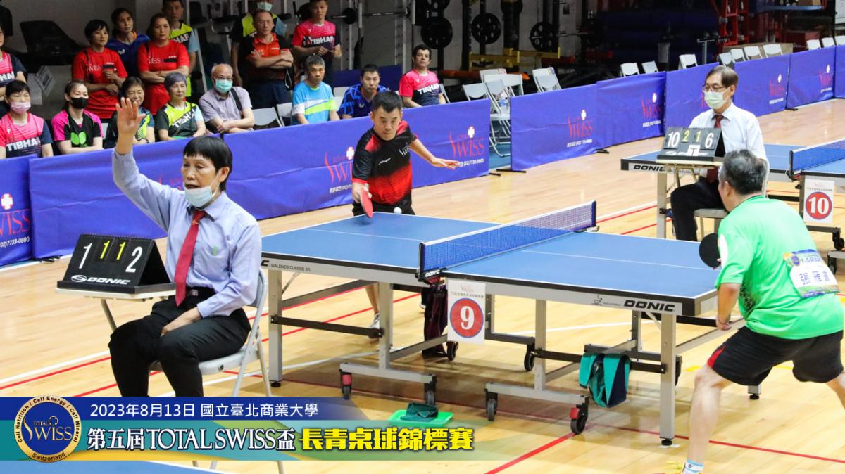 8月13日,「2023第五屆Total Swiss盃長青桌球錦標賽」進入第二天團體賽賽程,為了20萬元冠軍獎金,上午9點一開打,每一支參賽隊伍莫不使出渾身解數,希望能一路開掛、過關斬將,最終能贏得冠軍大獎。