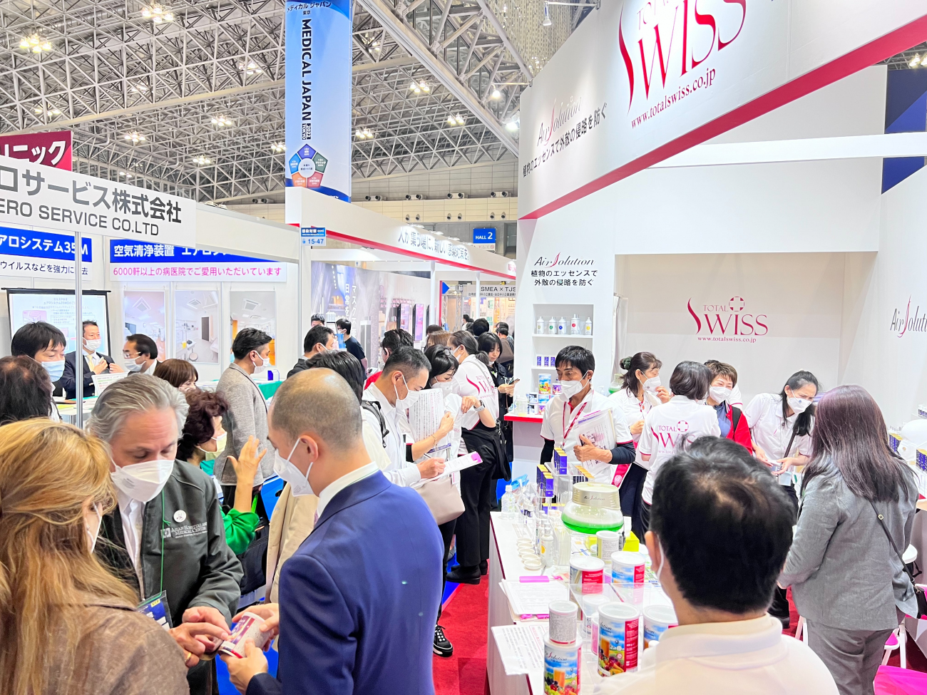 東京第二屆感染對策展覽會第二天一早,日本公司AGM美雪一大早就在日本群組發出好消息:「東京第二屆「感染對策展覽會」第二天,今天有個好的開始,一早就有很多人來到Total Swiss展位跟大家打成一片。」