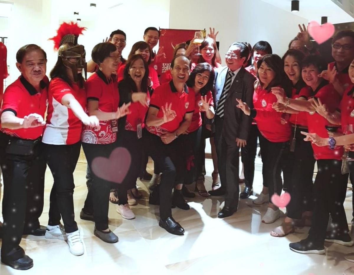 隨著佳餚美酒的催化與真情分享的加溫,晚宴中六月團的每個夥伴臉上寫滿著快樂與滿足。聽完王博士的勉勵與鼓舞,夥伴們更是High到翻掉,不停的用一輩子少有的奔放、熱情,與王博士留下了一幀又一幀的精采畫面。