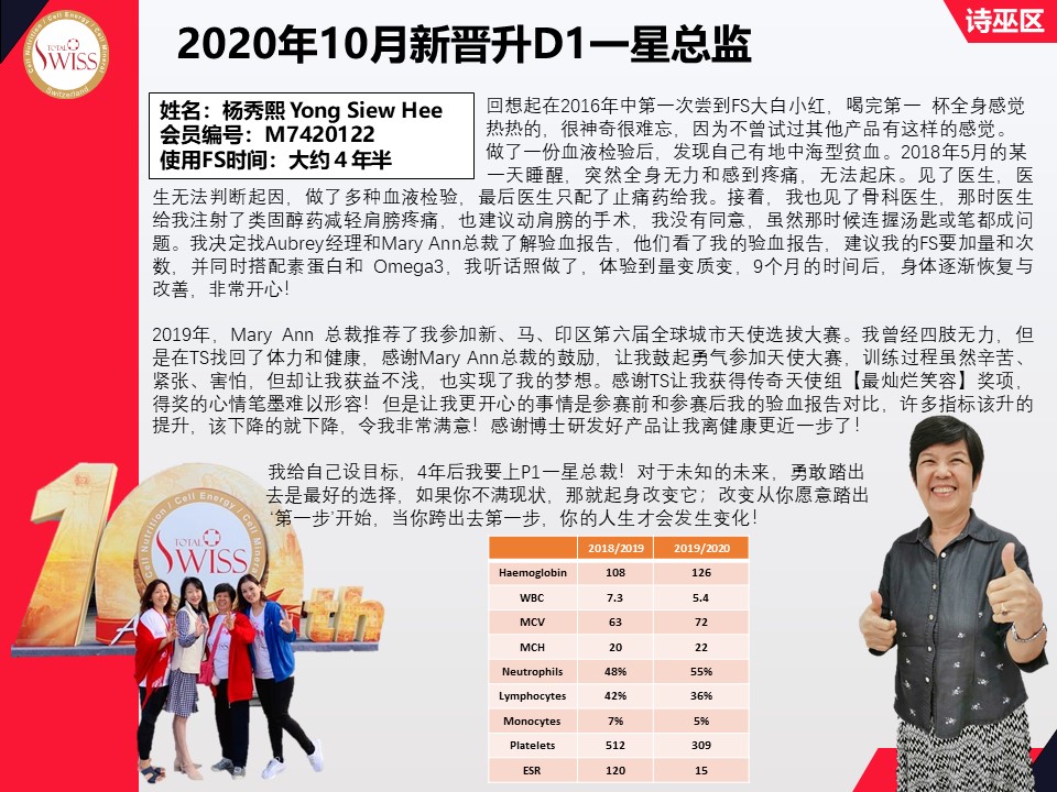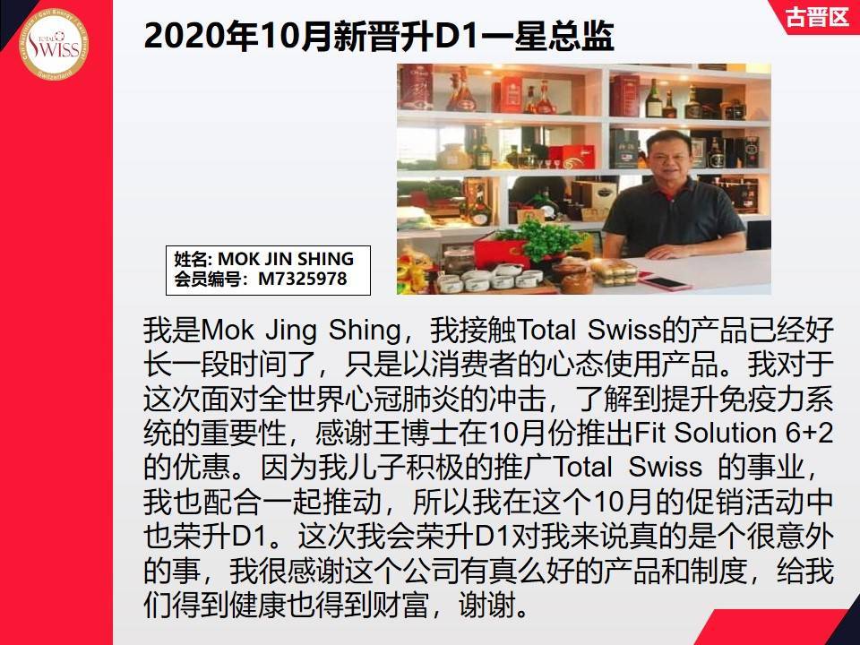 進公司、勤學習、發展組織、經營市場,承擔Total Swiss使命、開創直銷新標竿