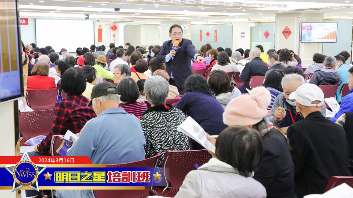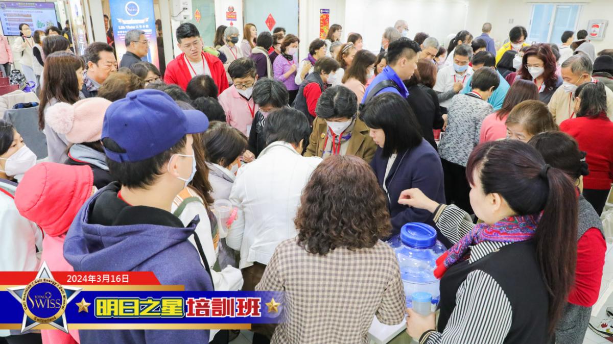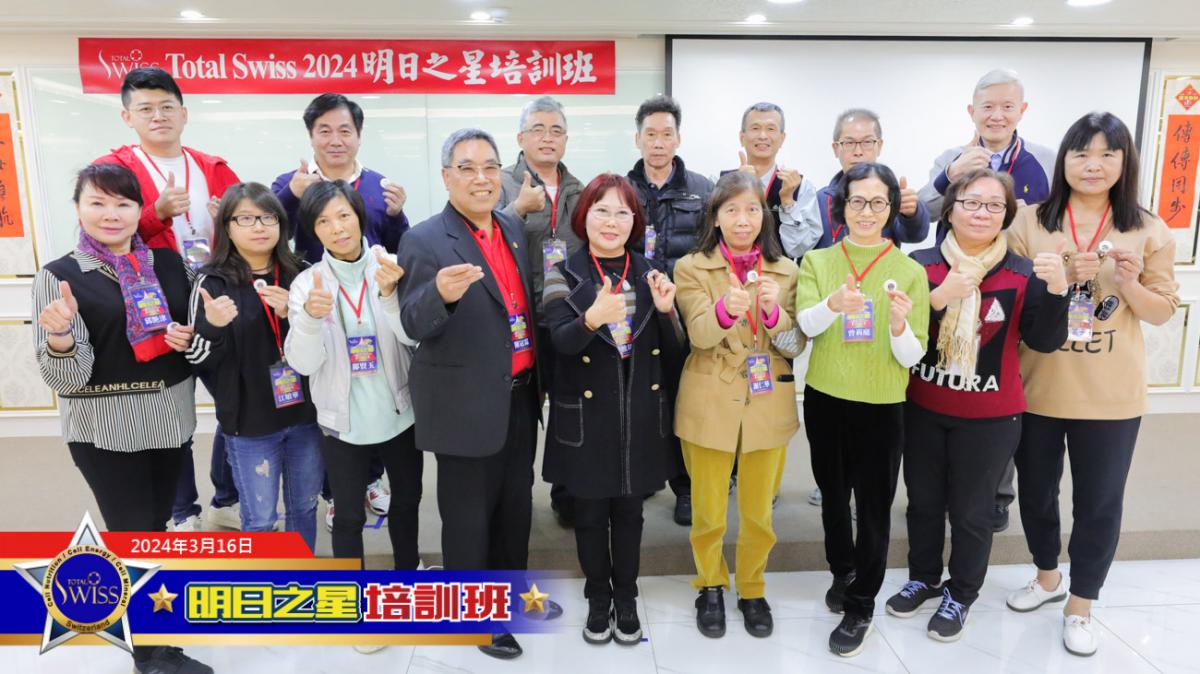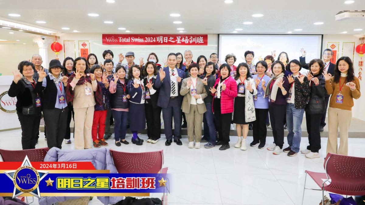 16日的明日之星課程仍舊由Johnny老師挑起大樑,用五堂完整的課程,從帶動學員的成功企圖、認識Total Swiss黃金三角的核心優勢,再進入會場運作,最後用理論與實作啓動學員們的事業行動力與戰鬥力。