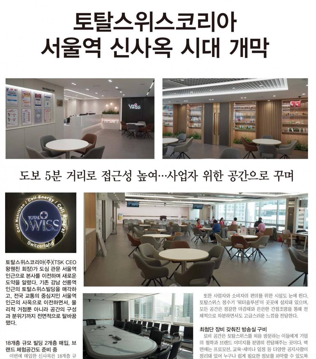 此次購入的新總部大樓位於一棟共18層的大樓中,佔據其中的兩層,距離首爾站僅步行5分鐘,擁有極佳的交通便利性。尤其是首爾站連接KTX、高速機場鐵路以及首都圈地鐵等多條交通線路,不僅方便首都圈地區,也極大提升了全國範圍內Total Swiss事業夥伴的出行便利性。