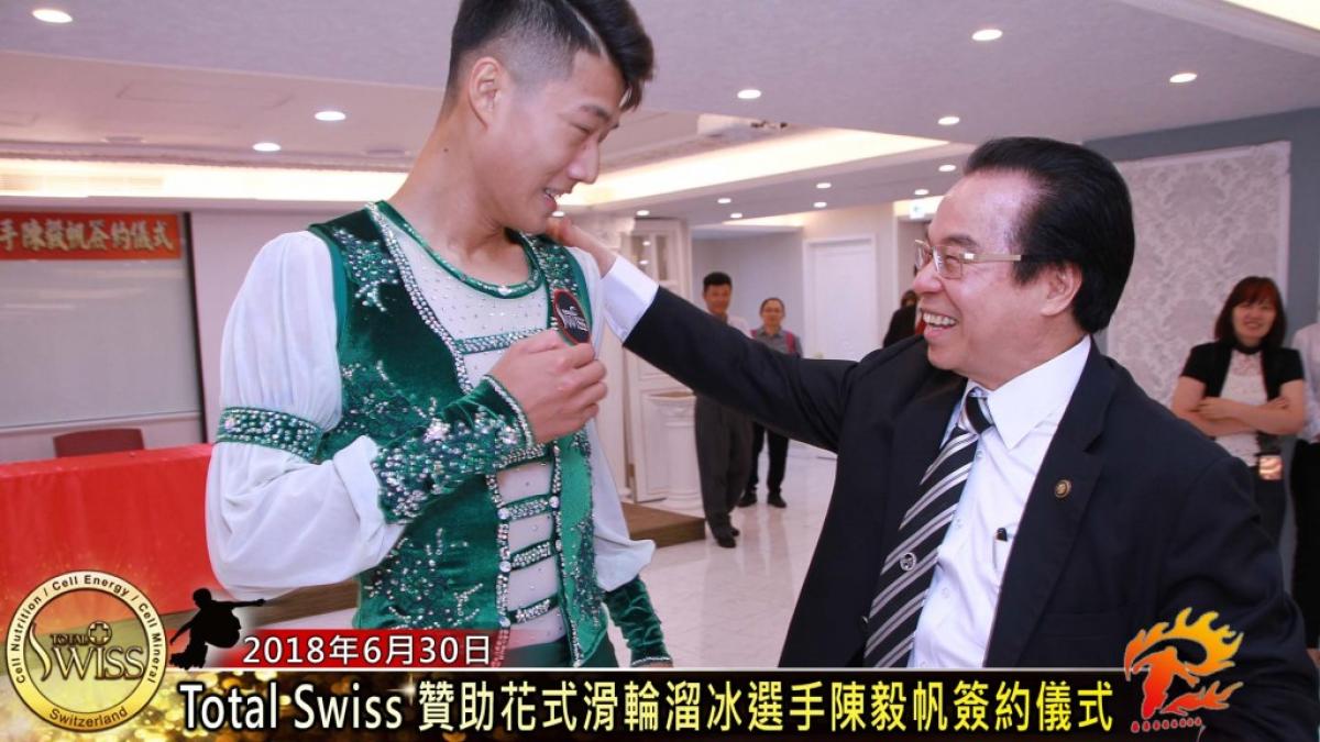 本於取之社會用之社會理念,Total Swiss已經在跆拳道、空手道、桌球、路跑等方面持續贊助多年,並且不斷開花結果。現在,在兩位運動選手贊助媒人陳旭芬總裁及周如萍助理教授的穿針引線之下,Total Swiss又遇見了一塊運動界的閃亮瑰寶,連續3屆世界冠軍的花式直排輪好手陳毅帆。