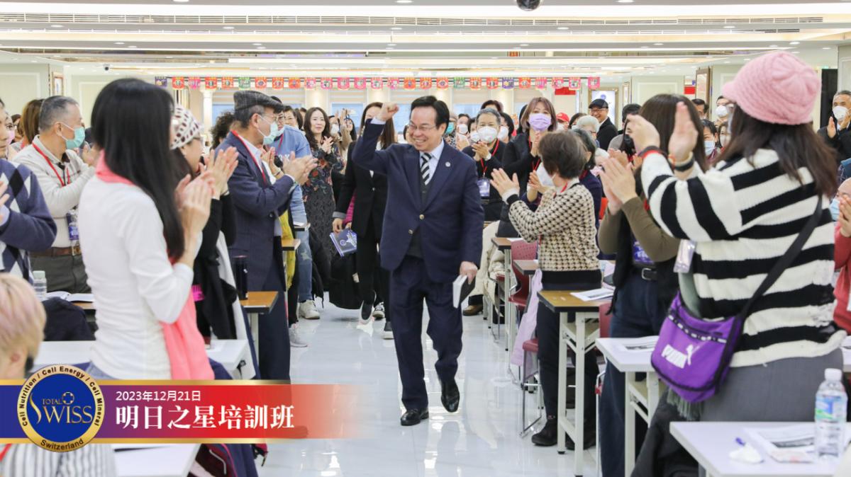12月21日,在2023年度首波寒流的低溫中,Total Swiss在台北公司七樓舉辦「明日之星培訓班課程」,近百位學員有人來自台東、有人來自南投山上,甚至遠道從炎熱的馬來西亞專程飛來學習。同時,在課堂的後場,還有數十位皇冠總裁、總裁及上線推薦人陪同一起學習。