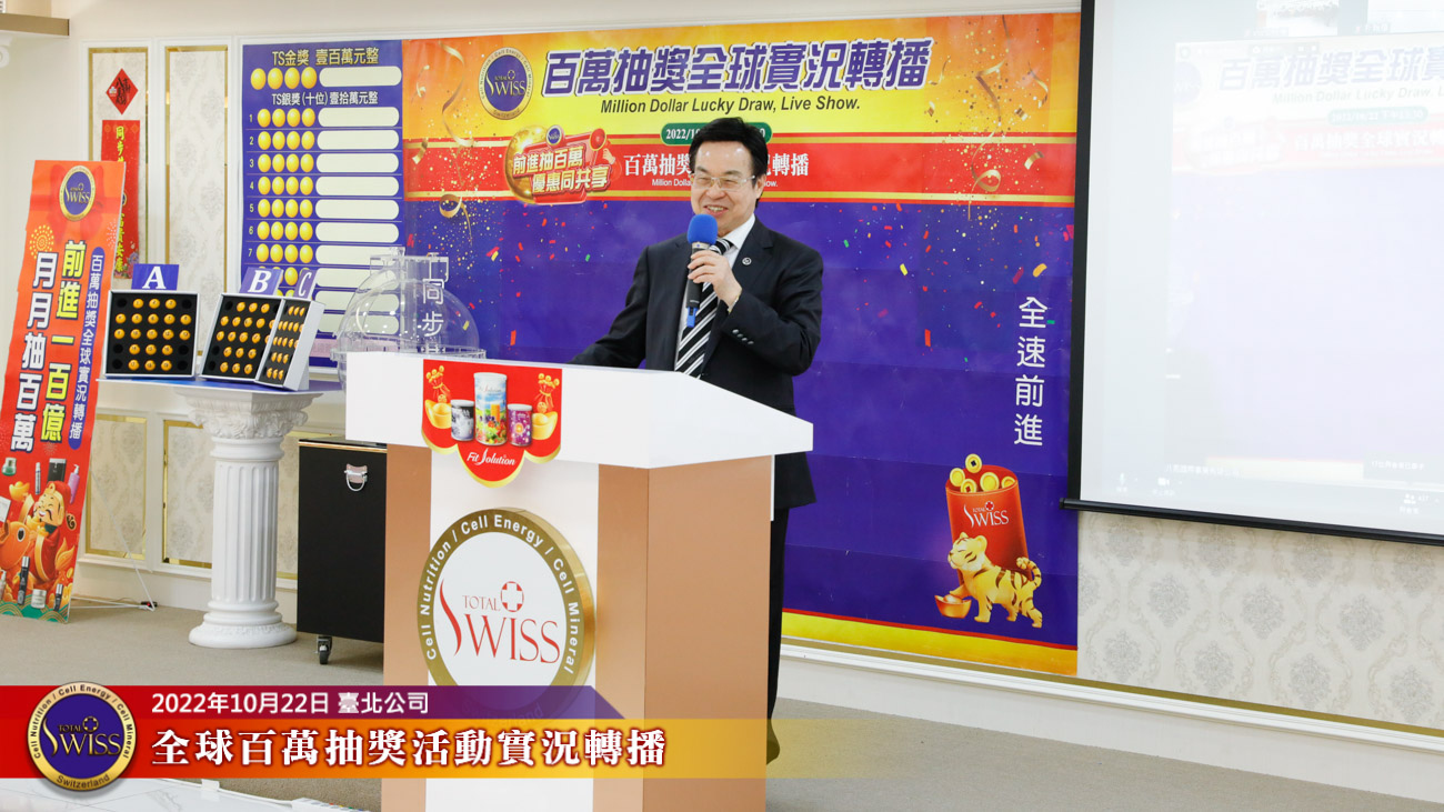 Total Swiss第十場百萬抽獎活動在10月22日的下午舉行,抽獎前,王博士先跟全球夥伴進行了一場創造雙贏的講座。