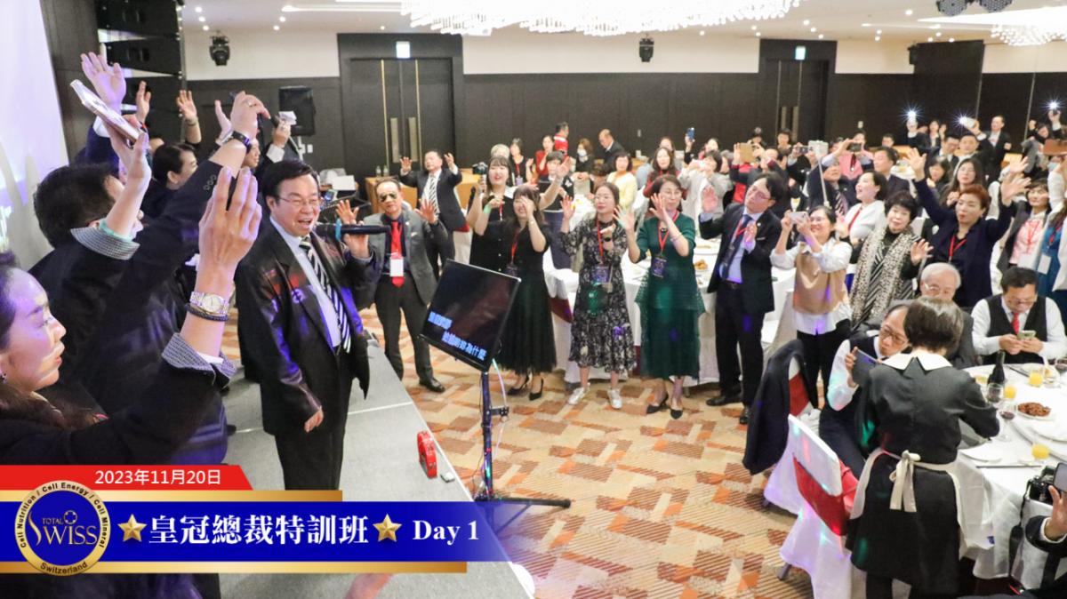 Total Swiss2023皇冠總裁特訓班第一天(11月20日)課程結束後,晚間七點,王博士特別在亞太飯店宴會廳(上課現場轉場後)宴請所有參加特訓的總裁、皇冠總裁,除了紅酒佳餚之外,也特地為大家安排了那卡西,讓大家能夠盡情高歌勁舞,嗨到最高點。在晚宴開動前,王博士向大家發表了一段簡短而又充滿鼓舞力量的講話。