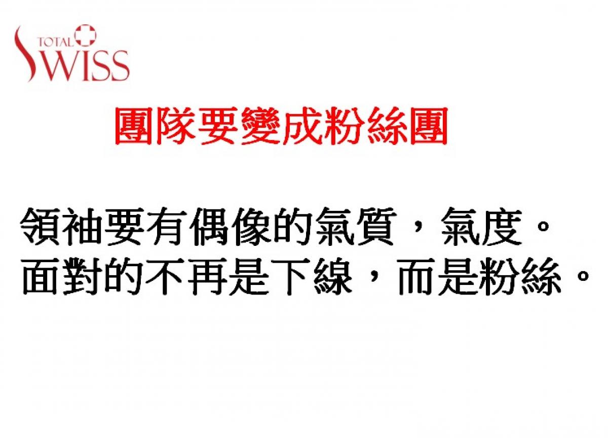 在這種情況下,大家不能等疫情結束了才開始經營Total Swiss事業。