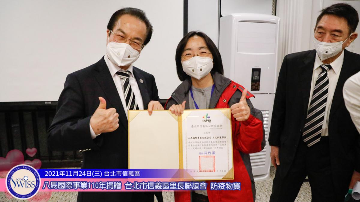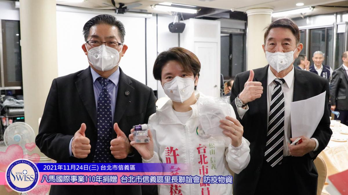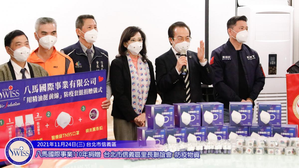 11月24日,捐贈的腳步再次回到台北,在台北市信義區象山腳下的慈惠堂松園餐廳舉行「台北市信義區里長聯誼會防疫精油套組捐贈儀式」。