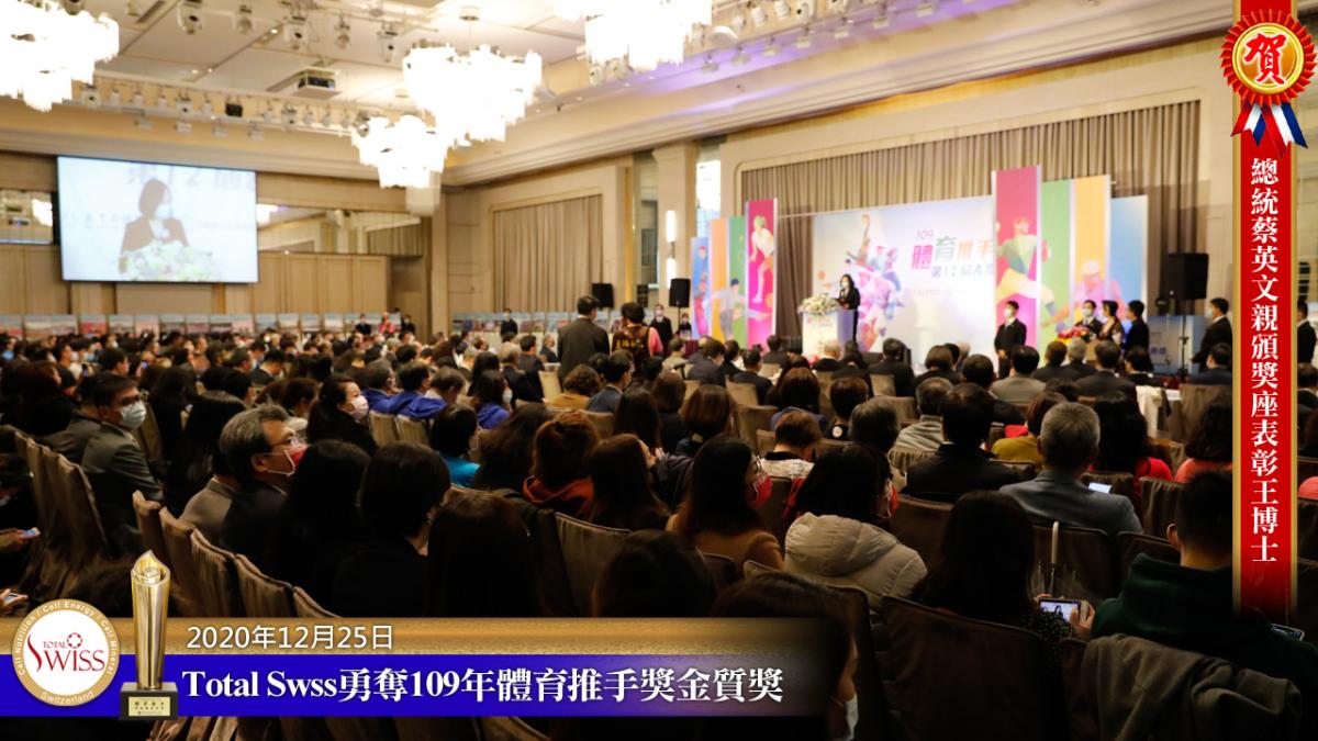 由教育部體育署、中華奧林匹克委員會、體育運動總會主辦的109年第十二屆體育推手獎表揚典禮,於今天(12月25日)下午假台北市美福大飯店熱鬧舉辦。為表達對企業的感謝,蔡英文總統親自出席、致詞、並頒發獎座給二十餘家金質獎獲獎企業。