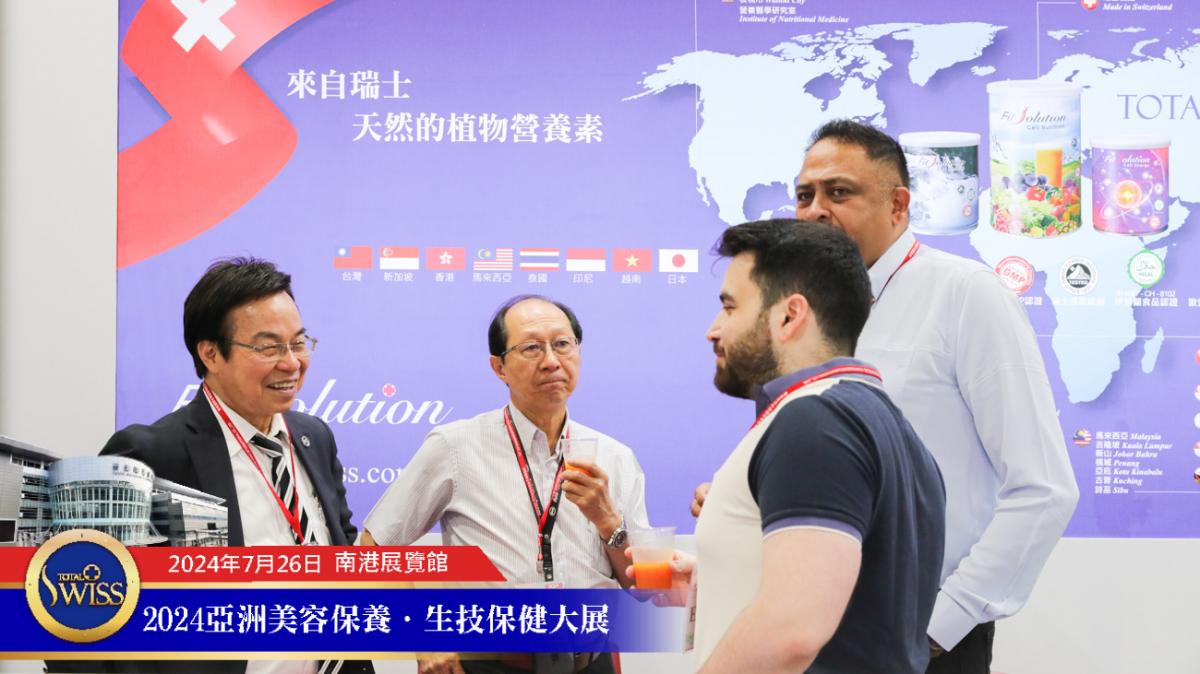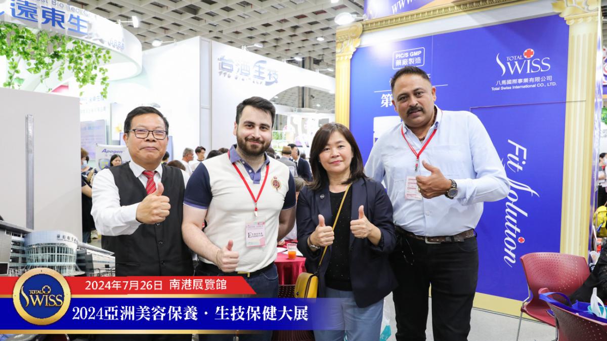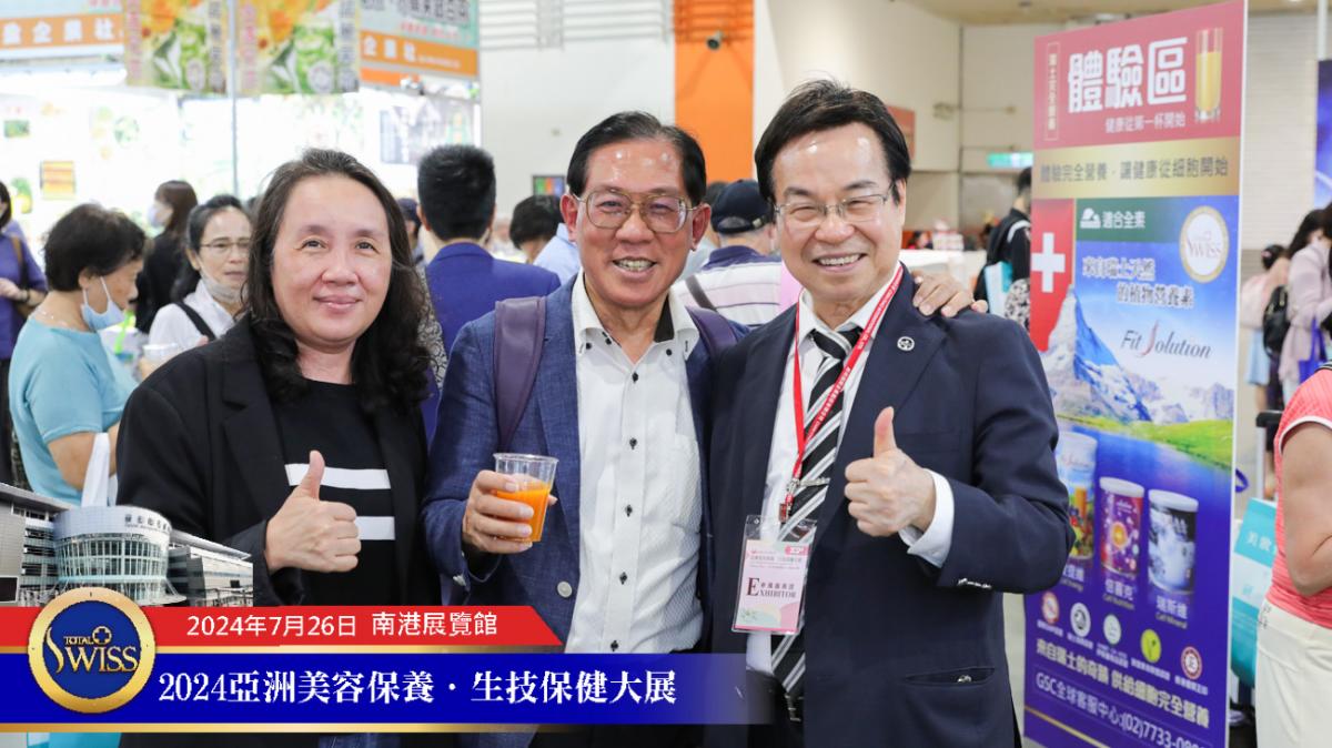 由於Total Swiss的展位吸睛、場面熱鬧,本次生技美容大展主辦單位展昭公司負責人林茂廷理事長也特別來到Total Swiss展位,親自向王博士致意。在交流中,林理事長向王博士豎起大拇指高度肯定Total Swiss紅不讓的人氣。另外,他也透露,每年超過1200個展位的亞洲生技美容大展,不只在亞洲長期名列第一,也是全球三大生技展之一,近年來,在台北舉辦的亞洲生技展一直是僅次於美國、歐洲(瑞士)生技展之外全球第三大生技展覽。