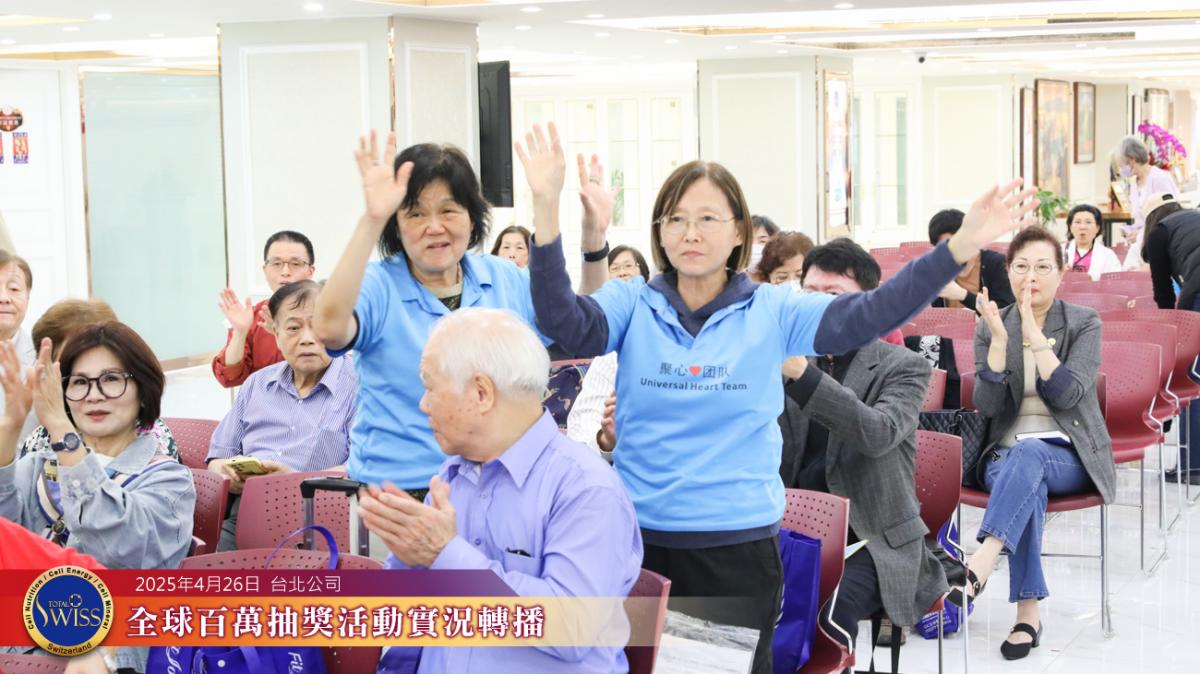 在4月26日百萬抽獎得獎者的獎項全部頒發完畢之後,王博士接著向全球(包括已經深夜12點的美國洛杉磯夥伴)描繪如何不生病,如何賺到本益比、本夢比,如何跟大家一起實現不留貧病在人間的願景。