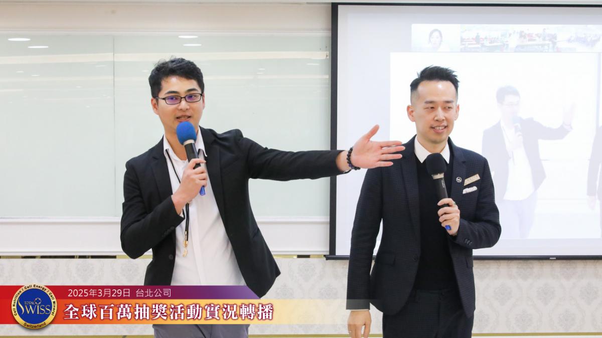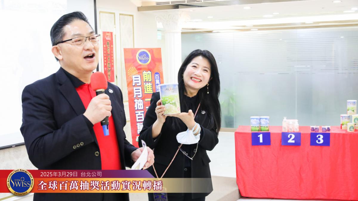 2025年3月29日下午,Total Swiss第39回百萬抽獎在台北公司七樓舉行。全台分公司、藥妝藥局以及全球各據點也透過線上轉播讓全球夥伴可以同步參與。