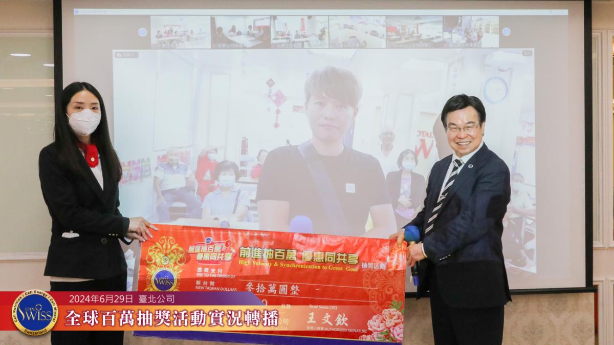 Total Swiss第30回全球百萬抽獎於6月29日下午1點30分舉行,由於第29回把大量的獎金累積到第30回,因此台北現場很早就湧現人潮,臨近開獎時,晚到的夥伴已經沒有座位,只能坐到台北七樓會場後方的洽談區。