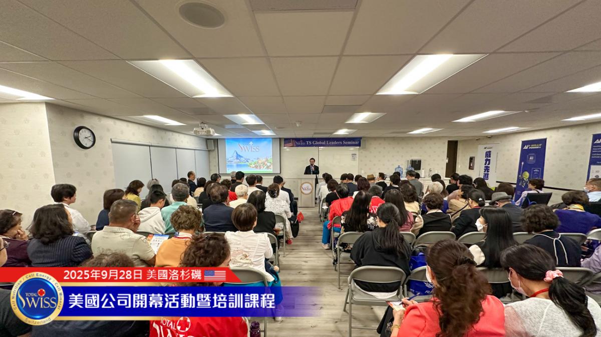美西時間9月28日下午,Total Swiss USA盛大開幕系列首場活動於加州核桃市Total Swiss美國公司二樓舉行。內容包括夥伴的健康見證、Amy姐與金東元兩位CCP的事業分享,以及王博士的全產品講座與對Total Swiss未來發展的規劃。每個環節都為Total Swiss在美國這個擁有3億人口且具有強大消費力的市場,注入了加速發展的豐沛能量。