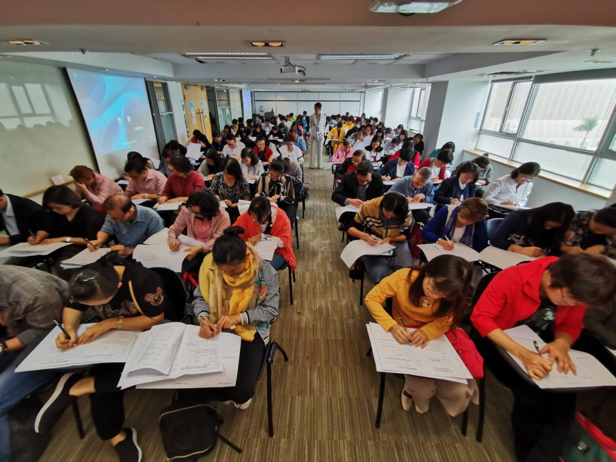霎時間,考試現場立即轉為肅靜,夥伴們個個聚精會神,認真看題、專注作答。有許多夥伴在答完題後,無意間還會展現出一抹自信的笑容。