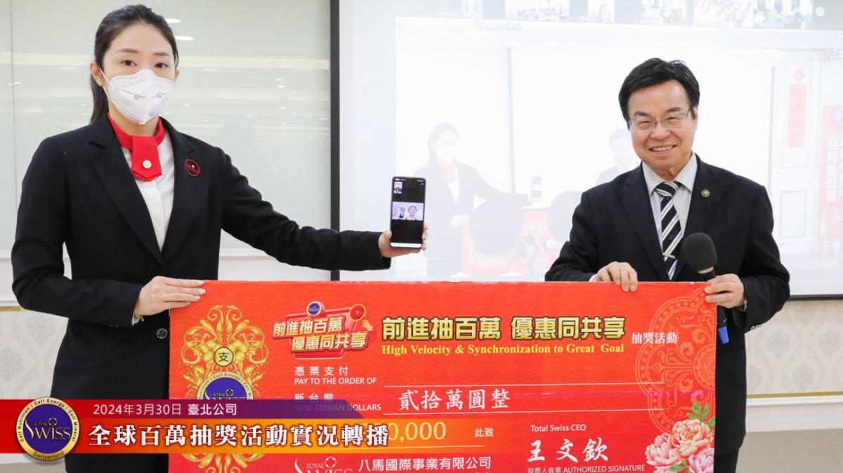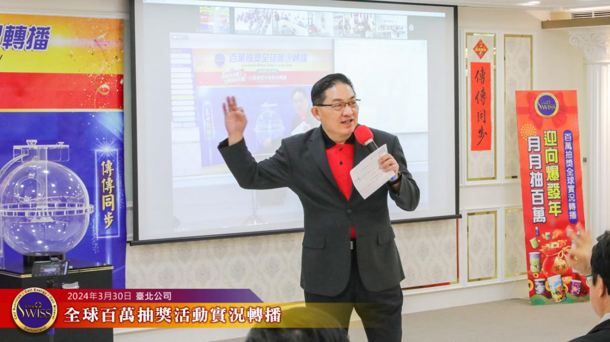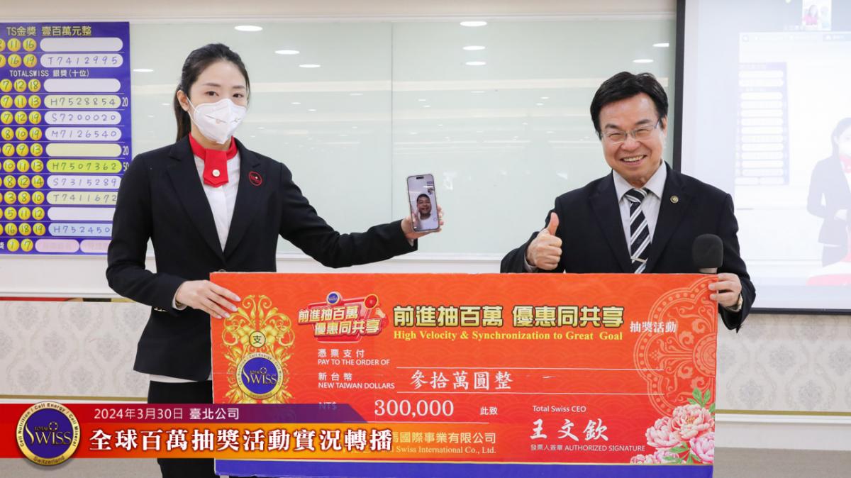Total Swiss第27回全球百萬抽獎,於2024年3月30日下午一點鐘在台北公司七樓舉行,除台北現場外,活動全程也向台灣各區據點及全球16個市場進行實況轉播。